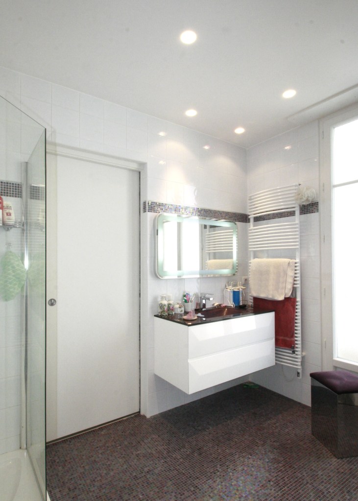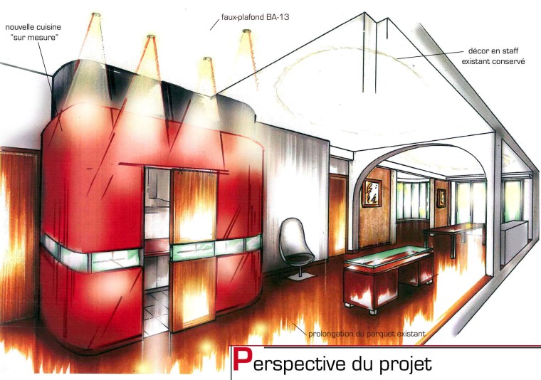 Rendu final d’un projet audacieux, conservant l’esprit de l’appartement, tout en y ajoutant une touche de modernité et une redistribution totale des volumes.